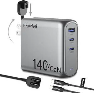 140W GaN+ USB C Charger 100W Laptop Fast Charger PD3.1 PPS 3-Port USB C Wall Charger Power Adapter for MacBook Pro 16'', Dell XPS, iPhone 16/15 Pro Max, iPad Pro, Tablet, Chromebook (Gray)