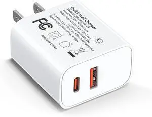 USB Charger BlockPD20W USBC Charger Block & USB Fast Charging Block Dual Port Power PlugCompatible with Phone 16/15/14/13/12/11/X/8 Pad Sam Sung Google Galaxy & More