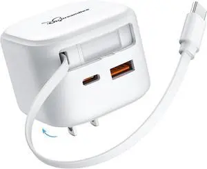 Retractable Wall Charger for iPhone 17 3-Port USB Charger with Retractable Type C Cable (39.4 inch) 35W Fast Charging Travel Adapter for iPhone 17/16/15 Pro Max/iPad/Galaxy/Pixel (White)