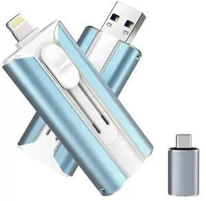 MFi Certified 512GB Flash Drive for iPhone Photo Stick, USB Memory Stick iPhone Flash Drive for Photos Videos, High Speed External Storage USB Stick Thumb Drive for iPhone/iPad/Android/PC(Sky Blue)