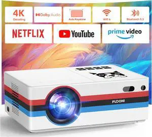 FUDONI Smart Projector with WiFi and Bluetooth, Native 1080P 25000L, Electric Focus Auto Keystone, Home Theater Outdoor Movie Projector with Built-in Streaming Apps, for iOS/Android/HDMI/USB/Laptop