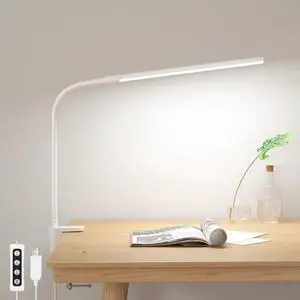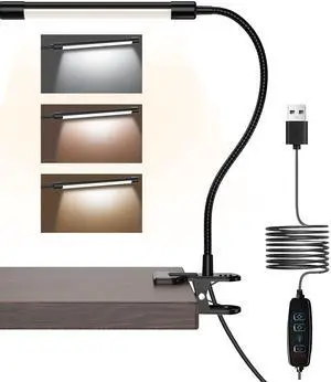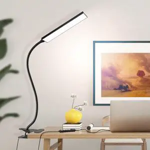 LED Desk Lamp with Clamp - Adjustable 3 Color Modes 10 Brightness Level Table Lamp, USB Eye Caring Flexible Gooseneck Desk Light for Home Office, Dorm Room, Reading, Nail, Clip On Light, Black- Brand: JHD
