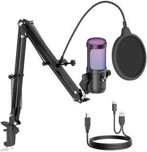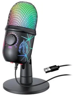 USB Microphone, Computer Condenser Mic with Noise Cancellation, Echo Mode, RGB Lighting, Mute Button, Plug & Play Gaming Mic for PC, Mac, PS5, Streaming, Recording, Podcasting & Online Meetings- Brand: LRUFOB