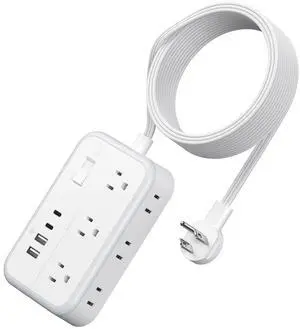 Surge Protector Power Strip - 6 Ft Flat Plug Extension Cord with 8 Widely Outlets and 4 USB Ports(1 USB C), 3 Side Outlet Extender for Home Office, White, ETL Listed