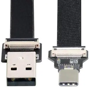 Vszerda 0.5M Right Angled USB 2.0 Type-A Male to USB-C Type-C Male Data Flat Slim FPC Cable for FPV & Disk & Phone
