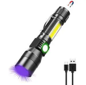 MOWETOO UV Flashlight, Portable Blacklight Flashlight, LED Torch with White and Ultraviolet Light Combo, Black Light Pet Urine Detector for Dog Cat Pee, ID Check, AC Leak, Bed Bug, Rocks, ResinBrand: MOWETOOPart Number: ?LE-8613dSelling Unit: 1, CountSpecifications: Adjustable Focus, Adjustable Light Modes, Durable, Lightweight, 500.0 lumen, Aluminum, alkaline, 10 L x 5 W x 5 H centimeters, 0.4 pounds, waterproof, 1 year manufacturer., MOWETOO, LE-8613dModel #: 092980864211