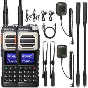 BAOFENG UV-25 Tri-Power Ham Radio Handheld, 10W Long Range Two Way Radio, UHF VHF AM FM Air NOAA Multi-Band Receiver, with 5200mAh Battery, Gooseneck ANT & Whip ANT, Tactical Speaker Mic, 2Packs