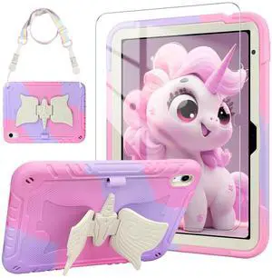 VOFUOE for iPad A16 Case 11th Generation 2025, for iPad 10th Generation Case 2022 10.9 Inch for Kids with Screen Protector Shoulder Strap Unicorn Stand Pencil Holder Hard Protective Cover-Purple Pink