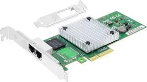 Vszerda Dual-Port PCIe X4 giga-bit Server Network Card, with 1860 Main Control Chip T2 RJ45 Ports LAN NIC Card 1000M PCI Express Ethernet Adapter Support Windows Server/Centos/RHEL Ubuntu Linux SLES
