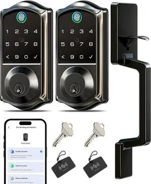Veise Fingerprint Smart Locks for Front Door with Handle Set, Matte Black