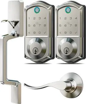 Veise VE017L+VE017-D Fingerprint Smart Door Lock, App Control, 7-in-1 Keyless Entry, Auto Lock, Emergency Power Port, Electronic Touchscreen Keypad, Biometric Smart Locks for Front Door, Satin Nickel