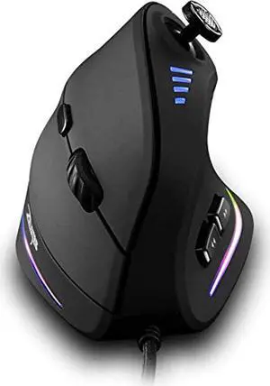 zelotes vertical mouse with control bar,10000dpi ergonomic mouse, led optical usb wired gaming mouse for laptop,pc- black