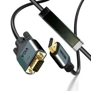 HDMI to VGA 40Ft Cable with IC, Gold-Plated HDMI to VGA Compatible for Computer, Desktop, Laptop, PC, Monitor, Projector,HDTV, Raspberry Pi, Roku, Xbox and More, Green-Gray Aluminum Shell- Brand: YOTETION