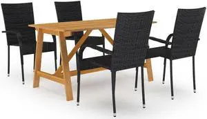 vidaXL Patio Dining Set 5 Piece Outdoor Dining Table and Rattan Chairs Black