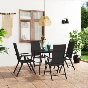 vidaXL Dining Set Black PE rattan, aluminum, glass, steel 5 Piece