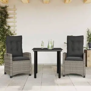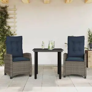vidaXL Patio Dining Set with Cushions Outdoor Furniture 3 Piece Gray Poly Rattan
