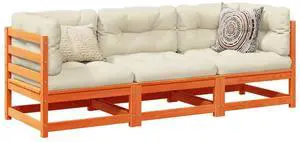 vidaXL Patio Sofa Set with Cushions Outdoor 3 Piece Wax Brown Solid Wood Pine