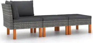 vidaXL Patio Lounge Set Outdoor Sectional Sofa Set 4 Piece Poly Rattan Gray