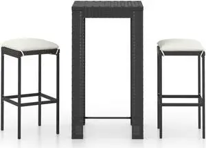 vidaXL Patio Dining Set 3 Piece Outdoor Table and Chairs PVC Rattan Black