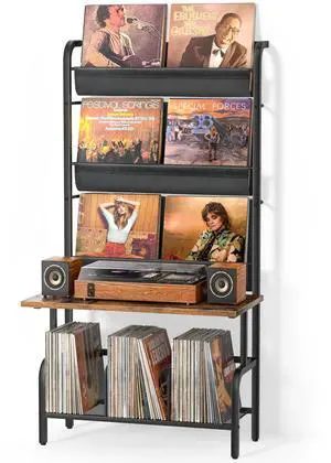 Record Player Stand with Vinyl Storage, Record Player Table with Vinyl Record Storage Up to 280 Albums, Turnta ble Stand with Record Holder Display Shelf, Record Cabinet for Media Stereo Audio