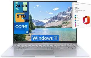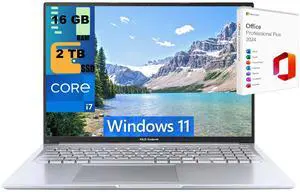 ASUS Vivobook 16 Laptop, 16" WUXGA Display, Intel Core i7-1355U 10 Cores Processor, Intel Iris Xe Graphics, 24GB DDR4  2TB PCIe SSD, Wi-Fi 6, Bluetooth 5.1, Windows 11 Pro ,Office 2024 License