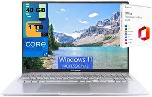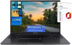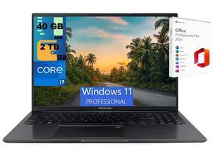 ASUS Vivobook 16 Laptop, 16" WUXGA Display, Intel Core i7-1355U 10 Cores Processor, Intel Iris Xe Graphics, 40GB DDR4  2TB PCIe SSD, Wi-Fi 6, Bluetooth 5.1, Windows 11 Pro ,Office 2024 License