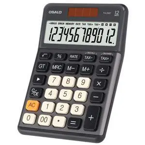 SOEWIOU Office Small Calculator Desktop with Tax+/- for Tax Calculation, 12 Digit Large LCD Display, Solar Battery Power, Durable Portable Design, Financial Accounting Business Home Use(OS-200T-Gray)