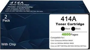 2 Pack Replacement for HP 414A Black Toner Cartridge W2020A for HP Color Laser Pro MFP M479fdw M454dw M454dn M479fdn Toner Printer Ink
