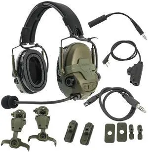 HEARFALCOM TAC700 Tactical Headset Hearing Protection Electronic Shooting Hunting Headset with U94 V2 PTT Adapter for uv5r Walkie Talkies (FG)