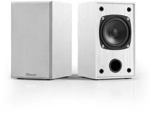 Elimavi Passive Bookshelf Speakers for Home Theater Surround Sound, Satellite Stereo Speakers with Classic Wood Grain for Record Player/Computer/TV, Wall Mountable, Cable Included, White