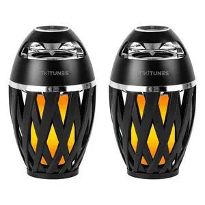 TikiTunes Portable Bluetooth 5.0 Indoor/Outdoor Wireless Speakers, LED Torch Atmospheric Lighting Effect, 5-Watt Audio USB Speakers, 2000 mAh Battery for iPhone/iPad/Android (Set of 2)