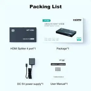 MT-VIKI HDMI Splitter 4K@60Hz, HDMI Splitter 1 in 4 Out, RGB 4:4:4, HDMI2.0b, HDCP2.2, 18Gbps, Full UHD Distributor for PS4 Fire Stick HDTV