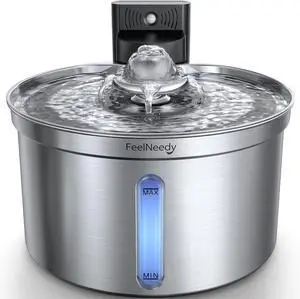 Cat Fountains for Drinking Stainless Steel: 108oz/3.2L Cat Water Fountain Led Light - Running Pet Water Fountain Filtered - GIOTOHUN Faucet Like Pet Water Fountains for Cats Indoor with 9 Filters