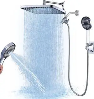 Shower Head with Handheld High Pressure: INAVAMZ Hand Held Shower Head & Rain Shower Head 2-IN-1 Shower Head with 59" Rotatable Stainless Steel Hose, Shower Trim Systems