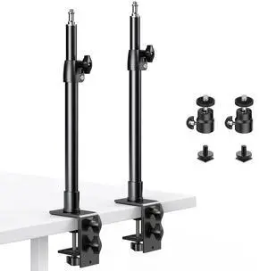 Camera Desk Mount Table Stand, Adjustable Light Stand 15"-35", Tabletop C Clamp for DSLR Camera, Ring Light, Live Streaming, Photo Video Shooting