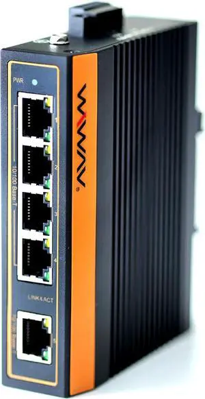 WIWAV W1005-5FE-I 10/100Mbps Unmanaged 5-Port Industrial Ethernet Switches with DIN Rail/Wall-Mount (UL Listed, IP40, -40~85°C)