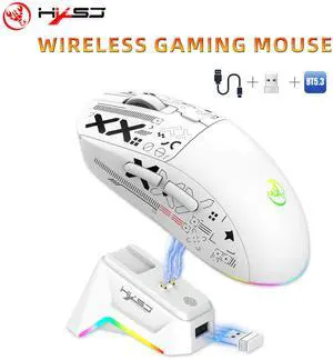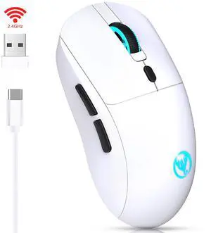 Wired/Wireless White Dual Mode Gaming Mouse, PC Computer Mice USB Mouse with Cycle Light Effect, RGB Modes, 5 Adjustable D Up to 4800, Lightweight Ergonomic Optical Mouse for Windows PC Laptop Game