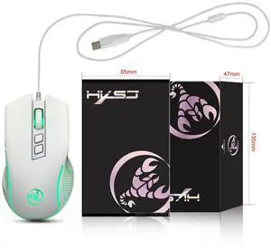 HXSJ X100 7-buttons 3600 DPI Cool Glowing Wired Gaming Mouse, Cable Length: 1.5m (White)