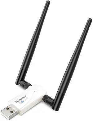 Wireless USB WiFi Adapter for Desktop PC, Techkey AC1300Mbps Network Dongle with Dual Band 2.4GHz/400Mbps 5GHz/867Mbps 5dBi High Gain Antenna for Laptop Computer Compatible Windows 11/10-Green