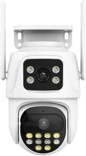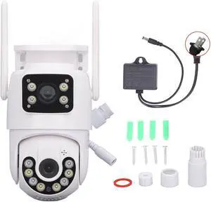 Dual Lens Security Cameras Outdoor, 355° View Pan/Tilt Home Security Camera with Auto-Tracking, Human Detection, Color Night Vision, 2-Way Audio, 2.4GHz WiFi, Cloud Storage, 110 to 240V