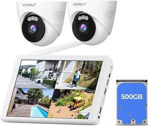 Wireless Security Camera System with 10" Monitor, 2X 3MP Outdoor Dome WiFi Cameras, 10CH Surveillance NVR with 500GB HDD, 24/7 Recording, Human Detection, Color Night Vision, No Monthly Fee