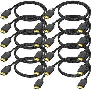 (10 Pack) 8K HDMI to HDMI 2.1 Cable, 10ft. 48Gbps Ultra High-Speed HDMI Cable, Supports 8K@60Hz & 4K@120Hz, Compatible with PS5, PS4, Xbox Series X/S, Nintendo Switch, AMD Radeon GPUs, 10-Feet.
