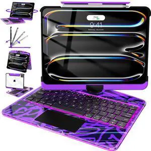 MoKo Touch Keyboard Case for iPad (A16) 11th Generation 11 inch 2025, iPad 10th Generation 10.9 inch Case with Pencil Holder, 7 Colors Backlit Multi-TrackPad Detachable Bluetooth Keyboard, Navy Blue