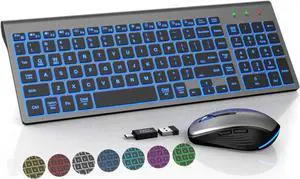 Wireless Keyboard and Mouse Combo, 9 Backlit Effects, Rechargeable 4000mAh Backlit Keyboard with Wrist Rest, 6 Button Mouse, 2.4G Full Size Quiet Keyboard Set for Computer, PC, Laptop, Mac, Windows