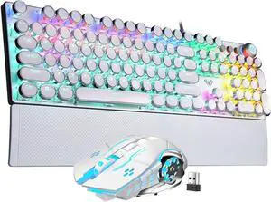 AULA White Gaming Keyboard and Mouse Combo (F2088 Typewriter Style Mechanical Keyboard Wired + SC100 Wireless Gaming Mouse), LED Rainbow Backlit Keyboard Mouse Set