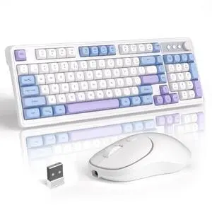 Wireless Gaming Keyboard and Mouse Combo V560, RGB Backlit Rechargeable Mechanical Feel 2.4GHz Quiet Blue White Purple Keyboard Mouse for Mac Laptop PC Gamer