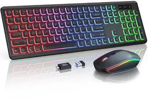 Wireless Keyboard and Mouse Combo, RGB Backlit, Rechargeable & Light Up Letters, Full-Size, Soft Typing, Sleep Mode, 2.4GHz Quiet Keyboard Set for Mac, Windows, Laptop, PC, Trueque (Black)