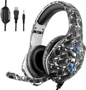 Gaming Headset with Microphone - for PC, PS4, PS5, Switch, Xbox One, Xbox Series X|S - 3.5mm Jack Gamer Headphone with Noise Canceling Mic (Camo Black)