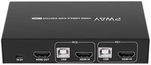 Switch HDMI 2 Port, 4 USB 2.0 Hub, UHD 4K @30Hz, Support Wireless Keyboard and Mouse, No Power Require, with HDMI and USB Cables (Black)