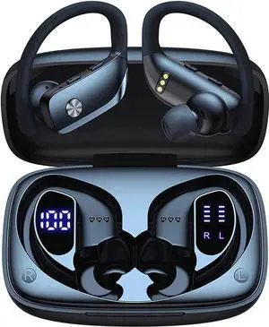 Open Ear Headphones with Mic, 29g Bluetooth Headset, Sweat Resistant,12Hrs, Dual Connect, Wireless Bluetooth Headphones with Noise Cancelling Microphone & Mute, for Work, Workout, Driving, Call, BlackLimited time offer, ends 02/08